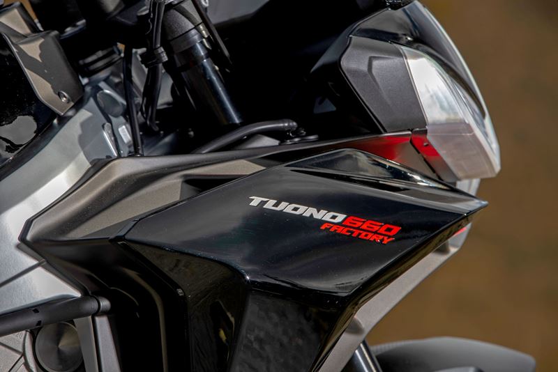 Dari segi penampilan, Tuono 660 Factory boleh dibezakan dengan versi standard menerusi grafik Factory Dark dan penutup pelana pembonceng berwarna hitam dan merah. Ia juga didatangkan standard dengan peletak kaki belakang.