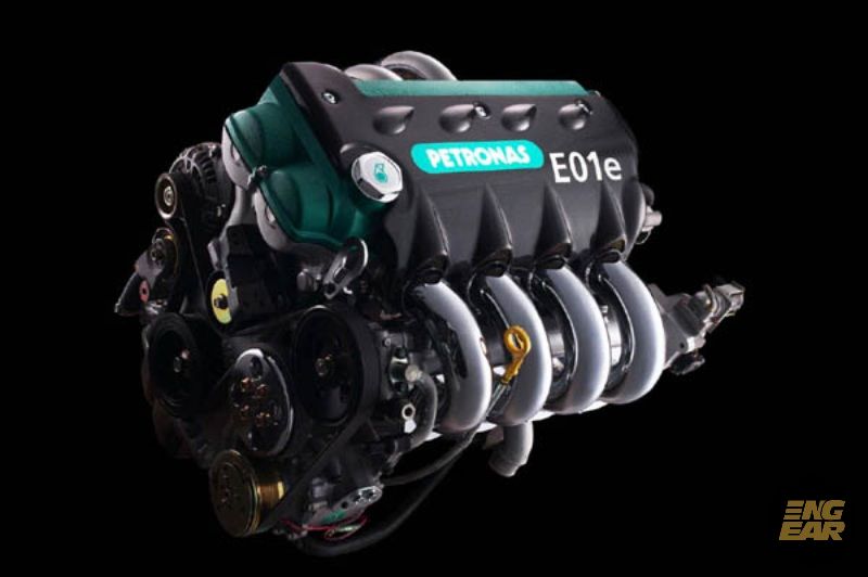 Ianya dibina dari aluminium dan mempunyai sistem Variable Valve Timing (VVT), jadi beratnya hanya sekitar 108.9kg. Angka-angka ini bermakna jurutera Petronas berjaya melepasi sasaran mereka iaitu output 200hp/200Nm dan berat 120kg.