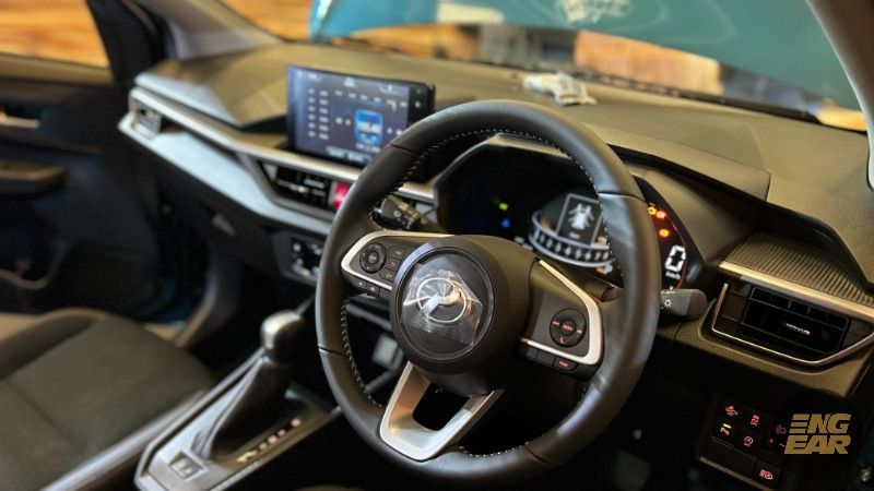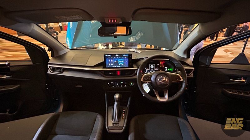 Sekali imbas, rekaan ruang kabin Axia tidak ubah seperti kabin Ativa, dengan beberapa elemen yang sama termasuk stereng, paparan TFT 7.0-inci dan skrin sentuh 9.0 inci (varian AV sahaja).