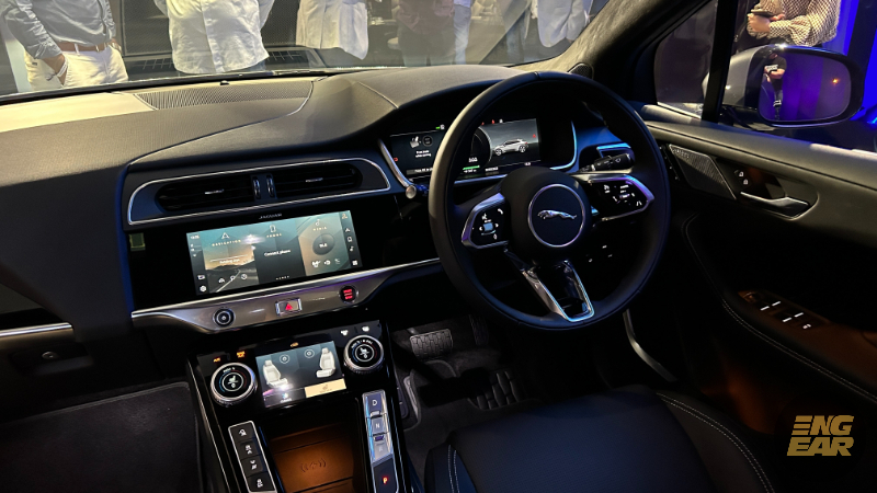 Di bahagian dalam, Jaguar I-Pace menampilkan kluster instrumen digital 12.3-inci di depan pemandu. Di tengah pula, terdapat skrin infotainmen Pivi Pro bersaiz 10-inci, dan di bawahnya terdapat skrin ketiga bersaiz 5-inci untuk paparan sistem pendingin hawa digital.