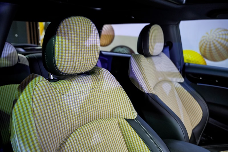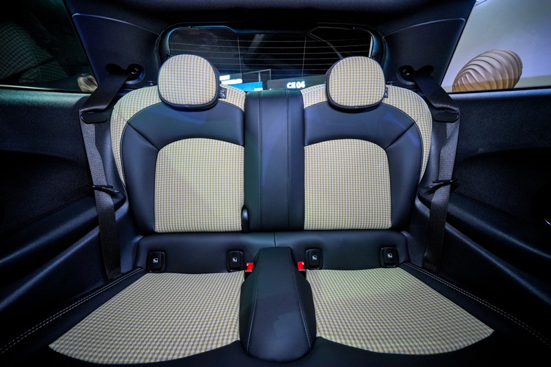 Di dalam, elemen yang paling menonjol adalah upholsteri fabrik/kulit Black Pearl Light Chequered yang diperbuat daripada botol-botol PET yang dikitar semula.