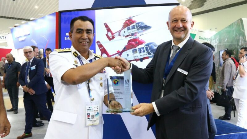 Anugerah Pencapaian 15 tahun pengoperasian helikopter Airbus AS365 N3 daripada Syarikat Airbus Sdn. Bhd. itu disampaikan MIEC bersempena penganjuran Pameran Udara dan Maritim Antarabangsa Langkawi (LIMA ’23).