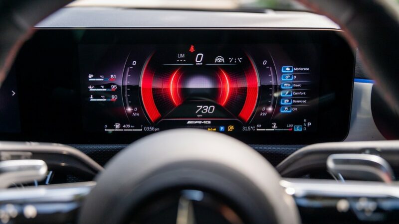 Sama seperti barisan A-Class lain, A45S juga dilengkapi dengan sistem MBUX generasi terkini. Ia juga didatangkan dengan sistem audio Burmester, sambungan USB Package Plus, AMG Real Performance Sound, dan sistem perekod data AMG Track Pace.