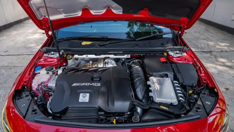 Apa pun, mari kita lihatkan angka-angka prestasinya. Enjin 2.0-liter M139 4-silinder turbo masih menjana 421hp pada 6,750rpm dan 500Nm tork antara 5,000 hingga 5,250rpm. Output ini dihantar ke semua roda melalui kotak gear AMG Speedshift 8-kelajuan dan sistem pacuan semua-roda 4Matic+.
