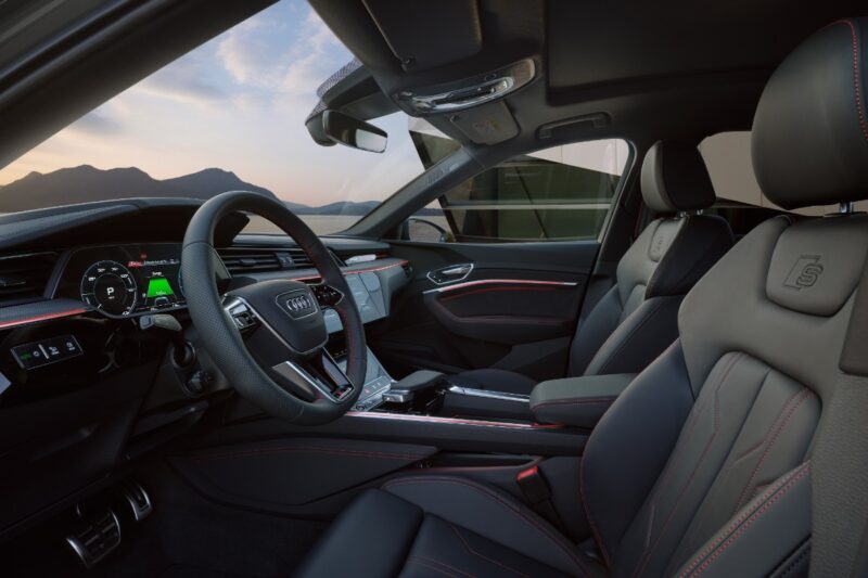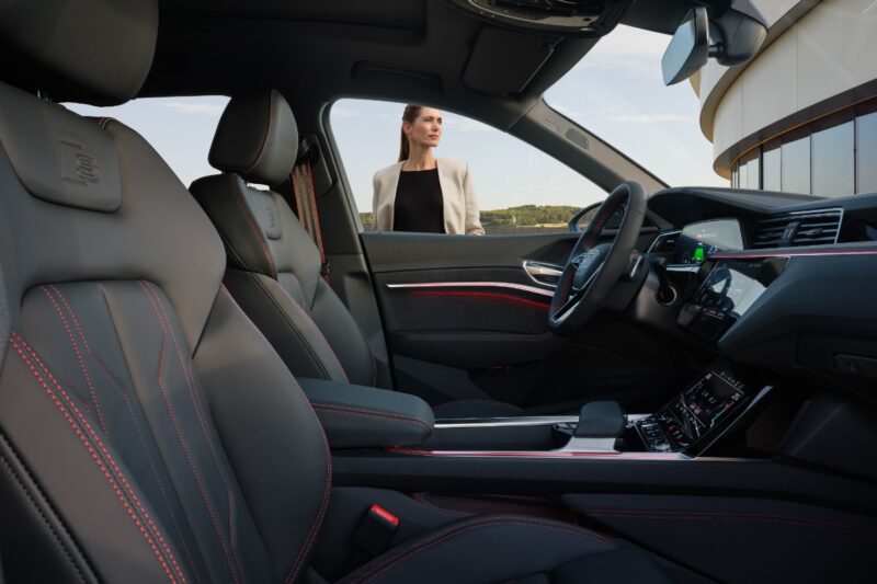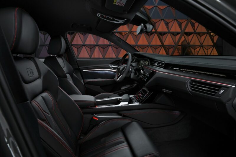 Ruang dalaman Q8 e-tron advanced 50 quattro dan Q8 e-tron S line 55 quattro menawarkan pengalaman tempat duduk kelas pertama, menurut kata Audi. Apabila kerusi penumpang belakang dilipat, ia mampu menawarkan ruang sehingga 1,725 liter.