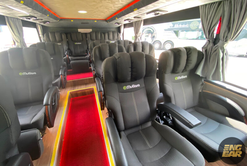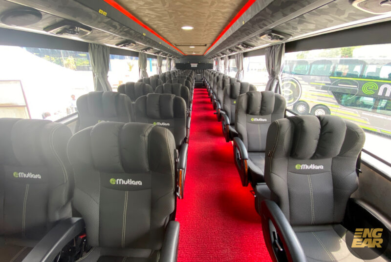 Koc-koc milik E-Mutiara ini mempunyai tempat duduk dalam konfigurasi 2+1 dan boleh memuatkan maksimum 51 penumpang pada satu-satu masa.