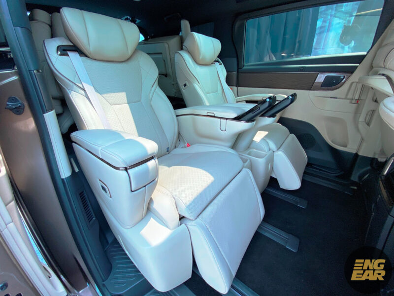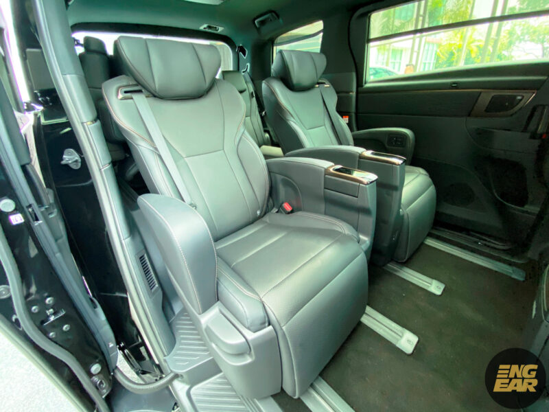 Sementara itu, Vellfire pula mendapat kerusi eksekutif dengan balutan kulit sintetik dengan fungsi-fungsi yang sama seperti Alphard, cuma tanpa mekanisma kuasa untuk akses ke barisan belakang.