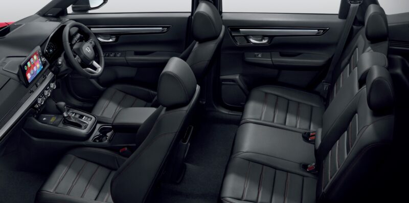 Di dalam, CR-V (kecuali varian S) didatangkan dengan upholsteri kulit, fungsi memori kerusi pemandu, pelarasan kuasa lapan hala untuk pemandu dan empat hala untuk penumpang, tambahan port USB Type C, pengecas wayarles 15W, paparan audio sembilan inci dan paddle shifter.