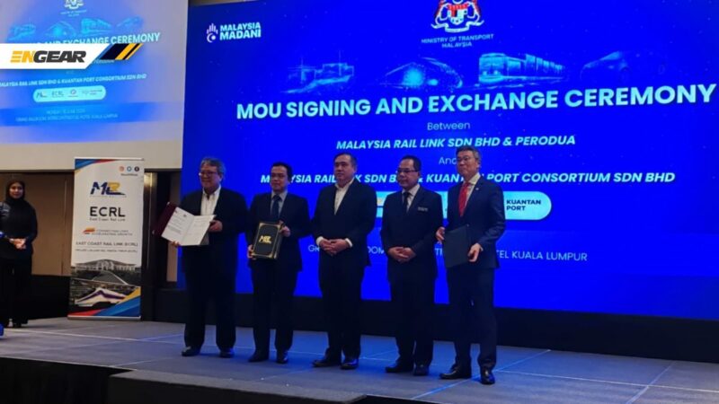 PERODUA hari ini menandatangani satu memorandum persafahaman (MoU) dengan Malaysia Rail Link Sdn Bhd (MRL) dan Kuantan Port Consortium bagi meneroka potensi perkhidmatan pengangkutan East Coast Rail Link (ECRL) yang akan beroperasi pada Januari 2027.