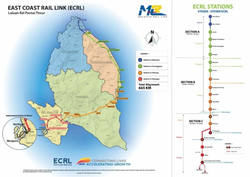 Tambahnya, “ECRL berfungsi sebagai penyedia untuk meningkatkan jaringan rantau ini dan pembangunan ekonomi, dengan menghubungkan Kuantan Port kepada Northport dan Westport di Pelabuhan Klang.