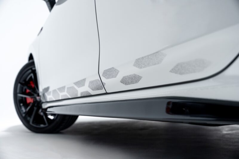 Emblem itu juga boleh ditemui pada bahagian tengah stereng, bersama-sama dengan plat sisi aluminium dan karpet “Edition 50” pada bahagian depan.