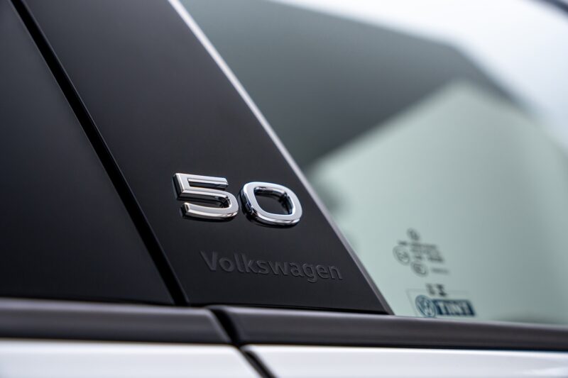 Penampilan luarannya disempurnakan dengan filem penapis haba “Edition 50 VW” dan emblem “50” pada tiang B. Ia boleh didapati dalam dua warna iaitu Oryx White dan Moonstone Grey.