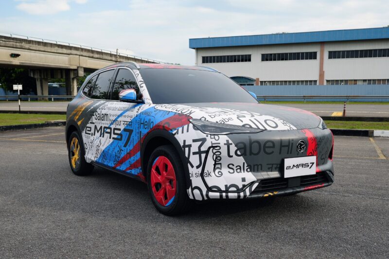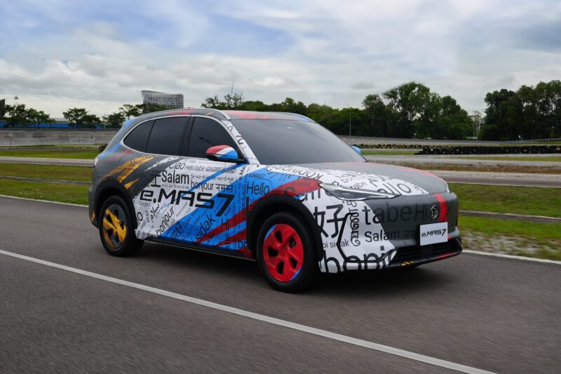 Bakal dilancarkan ke pasaran pada penghujung tahun ini, e.MAS 7 akan muncul dengan motif penyamaran khas mewakili warna Jalur Gemilang, sebagai sebahagian daripada kontinjen 25 kereta yang menampilkan pelbagai model Proton.