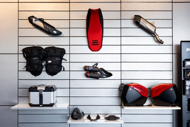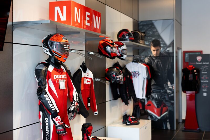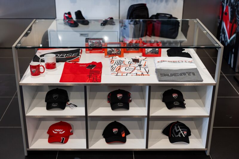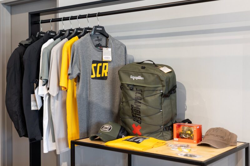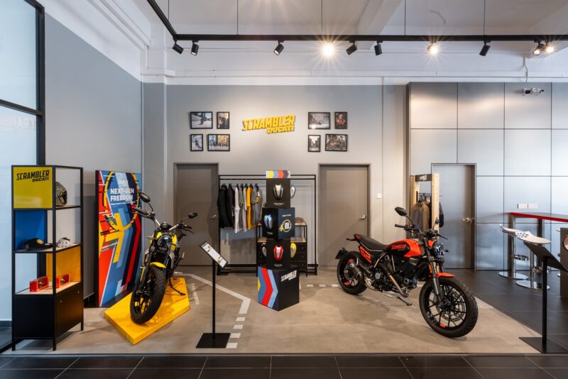 Selain itu, terdapat juga ruang khas yang mempamerkan barangan dan aksesori tulen Ducati, serta ruang berasingan untuk Scrambler Ducati yang lengkap dengan pakaian, aksesori dan ruang rehat tersendiri.