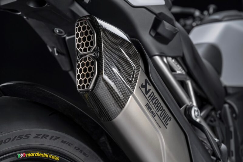 Seperti Panigale V4 SP2, Multistrada V4 RS juga menampilkan klac kering STM-EVO SBK yang memberikan bunyi unik jentera Ducati, serta penyenyap Akrapovič.