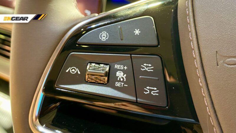 Kerusi kapten dilengkapi dengan pelarasan elektrik 10 hala, fungsi memori dan urut, yang boleh diakses dan dikawal menerusi skrin digital kecil pada perehat tangan.