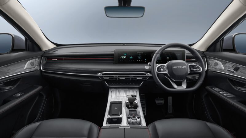 Kokpit: Tempat duduk Active Seat, lampu ambien, kemasan kulit dengan jahitan merah