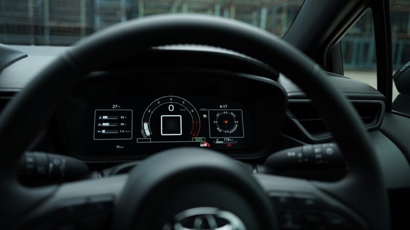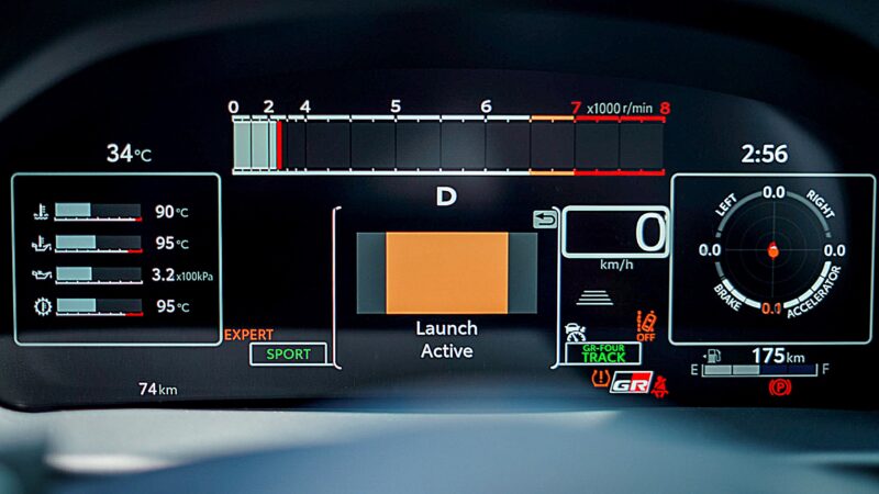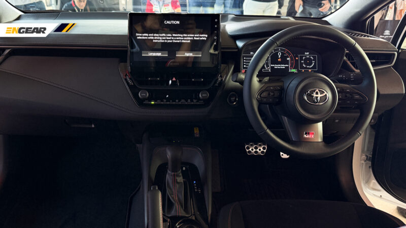 Untuk ruang kabin, GR Corolla AT 2026 mendapat kelengkapan seperti skrin Display Audio 10 inci, skrin kluster digital 12.3 inci, sokongan Apple CarPlay dan Android Auto tanpa wayar, skrin paparan head-up (HUD), paddle shifter serta penambahan ciri pemantauan titik buta (BSM).