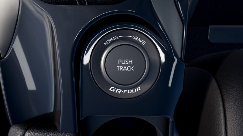 Sistem pacuan semua roda GR-Four menawarkan tiga tetapan agihan kuasa, iaitu Normal, Gravel dan Track, dibantu dengan tiga mod pemanduan iaitu Sport, Normal dan Eco.