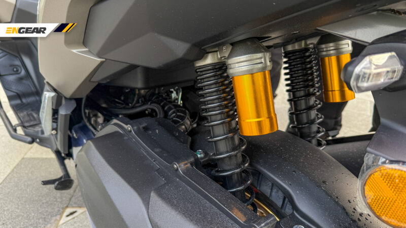 Suspensi terdiri daripada fork hadapan KYB jenis terbalik (USD) boleh laras (jarak pergerakan 175 mm), diikuti penyerap hentak tunggal KYB boleh laras di bahagian belakang.