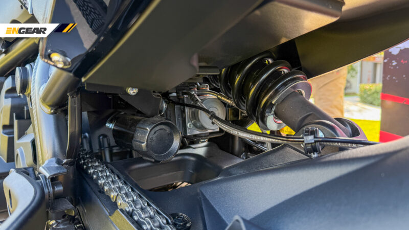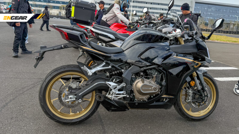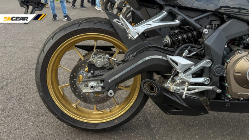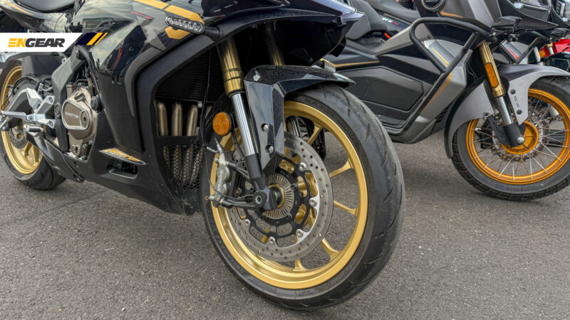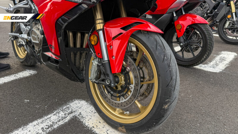 Ia turut mendapat kelengkapan seperti sistem suspensi KYB boleh laras sepenuhnya terdiri daripada fork jenis terbalik (USD) dan penyerap hentak tunggal, diikuti dengan sistem brek Brembo M4.32 dan balutan tayar Pirelli pada rim saiz 19 inci depan/17 inci belakang.
