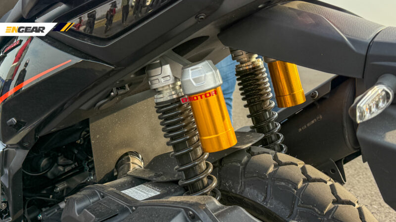 Suspensi terdiri daripada fork teleskopik di depan dibantu dengan tetapan lengan ayun dan penyerap hentak tunggal di bahagian belakang.