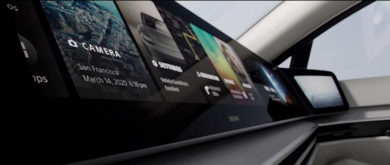 Terdapat skrin kluster digital melengkung, skrin infohibur di bahagian tengah, skrin paparan head-up dengan fungsi realiti terimbuh, dan juga opsyen untuk menambah skrin ketiga di depan penumpang hadapan.