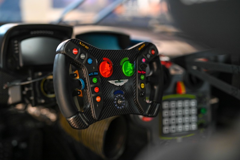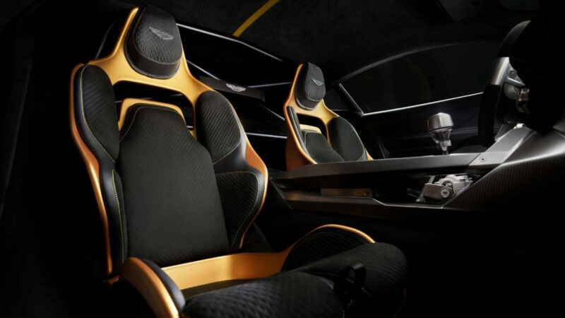 Pelanggan juga boleh memilih trim gentian karbon dan krom gelap atau mesh titanium yang dipadankan dengan krom satin. Sentuhan unik lain termasuk logo Aston Martin pada papan pemuka dan tulisan “AMR24” pada ambang pintu.