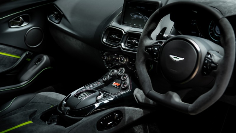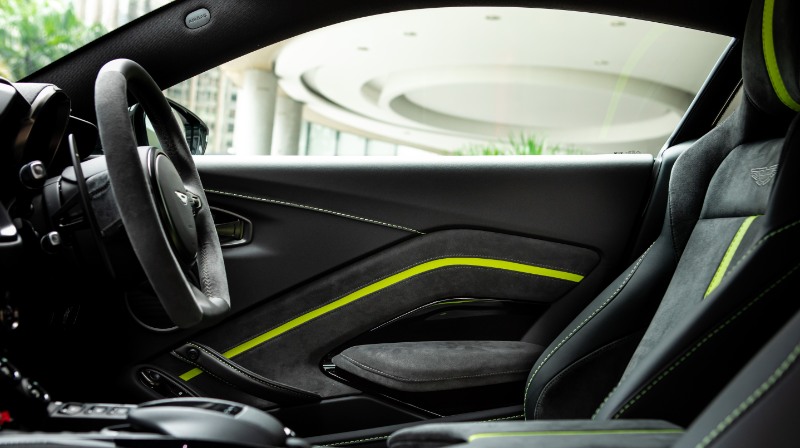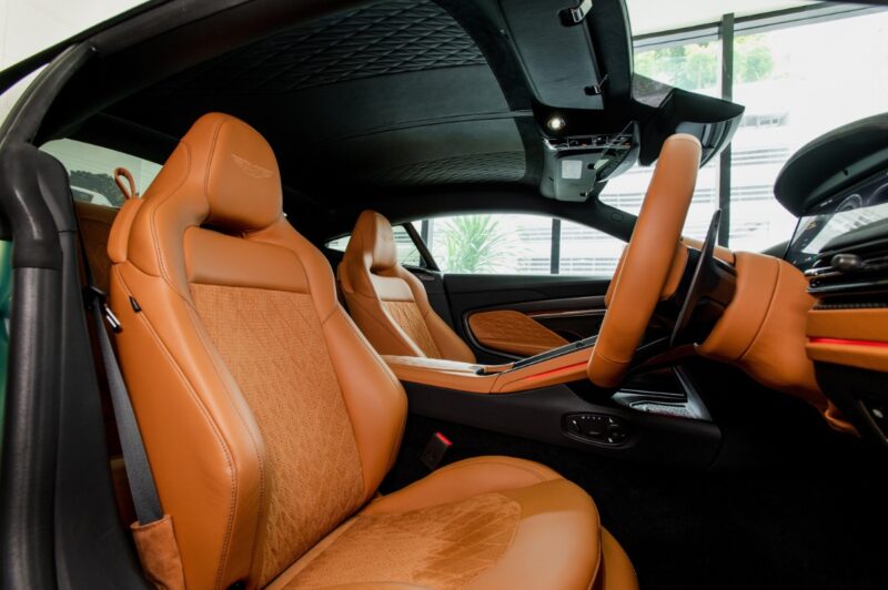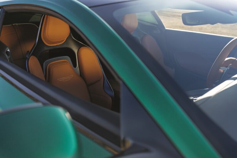 Untuk ruang dalaman, Aston Martin menawarkan dua skema warna iaitu Onyx Black (Monotone) dengan jahitan Lime, atau Onyx Black/Eifel Green Duotone dengan jahitan Lime.