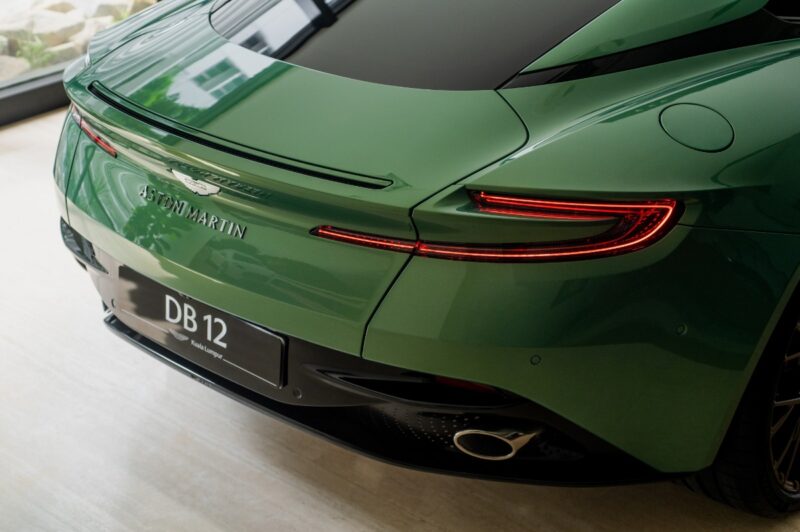 Di belakang, spoiler tetap meningkatkan kestabilan pada kelajuan tinggi, manakala diffuser baharu dengan empat paip ekzos yang disusun bertindih menyerlahkan karakter sporty DB12 S.