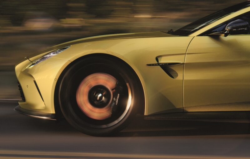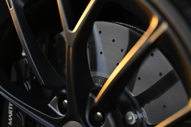 Rim magnesium bersaiz 21-inci ditutup dengan cakera aero untuk menambah baik aliran udara, diinspirasikan dari Aston RHAM/1 yang berlumba di Le Mans pada lewat 1970an. Brek adalah bersaiz 16.1-inci di depan dan 14.1-inci untuk belakang.