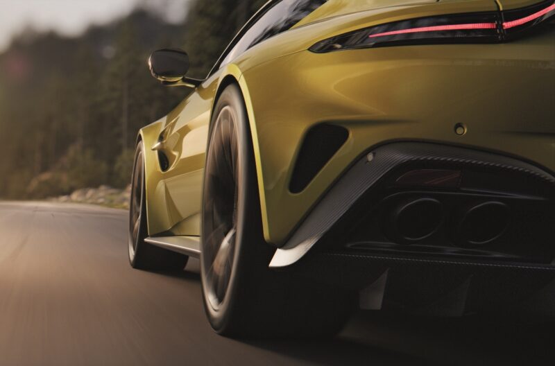Untuk bahagian luaran, Vantage dikatakan mengambil inspirasi daripada One-77 dengan badan yang lebih lebar (+30 mm) dan rekaan bahagian hadapan baharu yang menampilkan gril yang lebih besar.