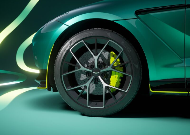 Penampilannya diserlahkan lagi dengan angkup brek berwarna Aston Martin Racing Green atau AMR Lime, rim Fortis berukuran 23 inci dengan kemasan hitam satin atau hitam berkilat, serta plak enjin AMR24 yang berselindung di bawah bonet.