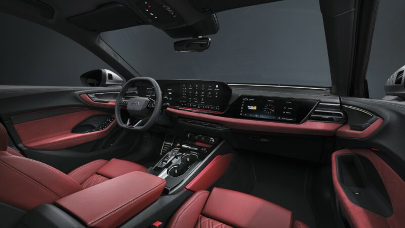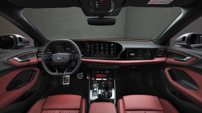 Bahagian kabin pula dilengkapi dengan skrin instrumen 12.3-inci, skrin tengah 10.1-inci, skrin ketiga 8.6-inci, sistem pendingin hawa empat-zon, pakej kemasan S Line, dan Apple Carplay serta Android Auto tanpa-wayar.