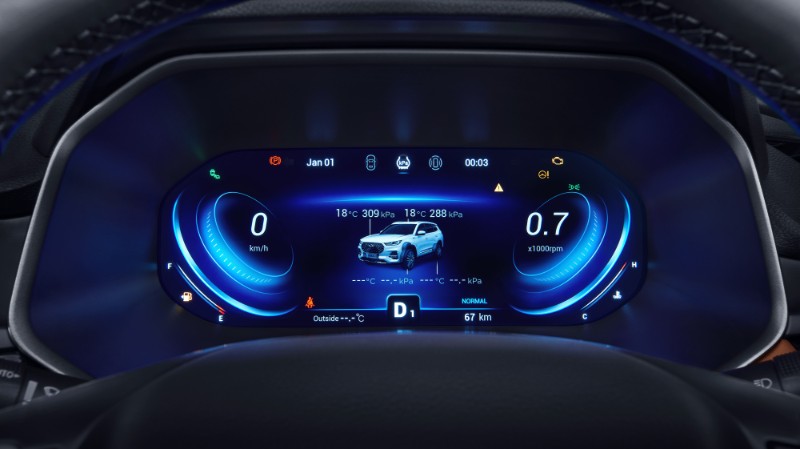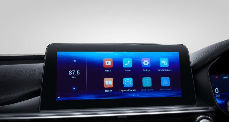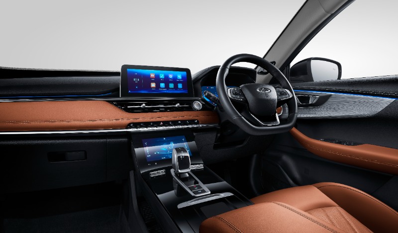 Pada bahagian dalaman, semua fungsi kenderaan dikawal melalui tiga skrin – panel meter mendatar 12.3-inci, skrin kawalan iklim 8-inci dan skrin infotainment terapung 10.25-inci yang memaparkan Apple CarPlay, Android Auto dan kamera undur.