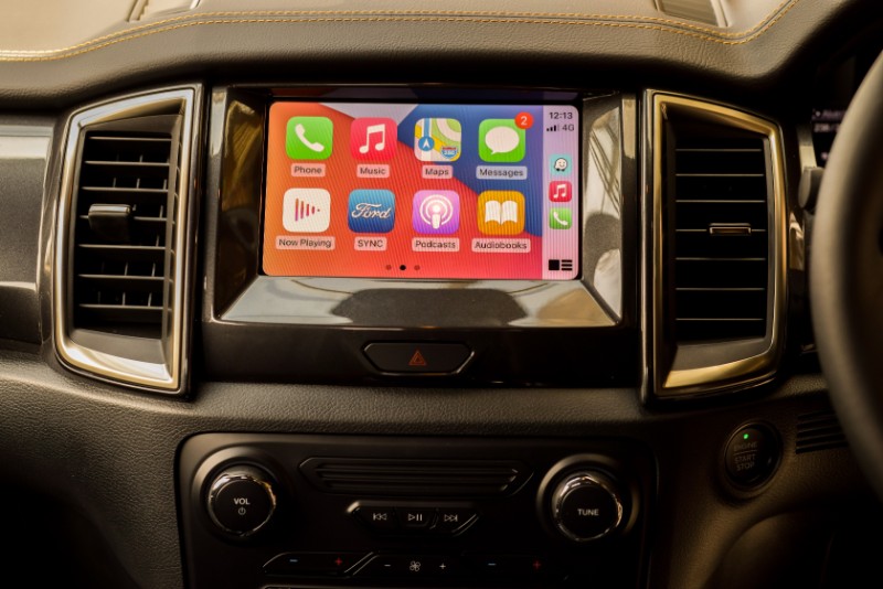 Sementara itu di konsol tengah terletaknya skrin infotainmen menegak bersaiz 12-inci untuk Titanium (10.1-inci untuk Trend dan Sport) yang menggunakan perisian Ford SYNC 4A dan menyokong sambungan Android Auto dan Apple Carplay.