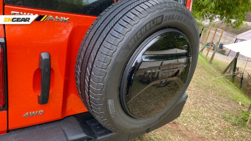 Di belakang pula, terdapat tayar ganti di luar pintu but yang dibuka ke tepi, betul-betul seperti Jeep klasik. Tank 300 dilengkapi dengan rim 18-inci dan tayar Michelin Primacy SUV.