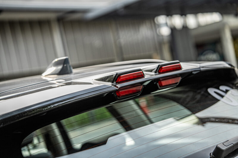 Bahagian belakang pula menampilkan spoiler adaptif berkuasa elektrik yang boleh dinaikkan atau diturunkan mengikut keperluan, lampu depan pula kalau dilihat daripada mana-mana sudut pun, macam 911.