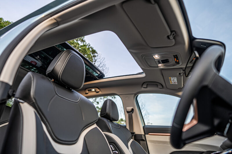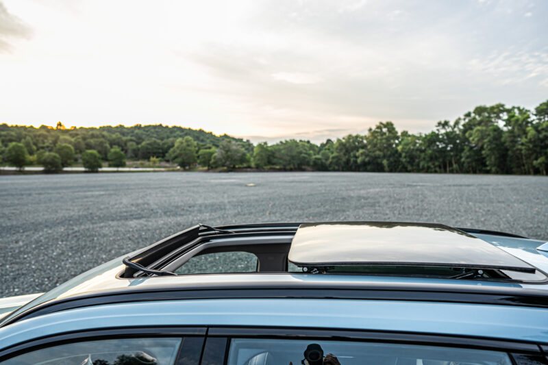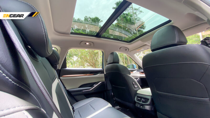 Selain jarak antara roda panjang, satu perkara yang membuatkan ruang tersebut nampak lebih luas ialah bumbung kaca panorama yang agak luas dan memanjang ke belakang.