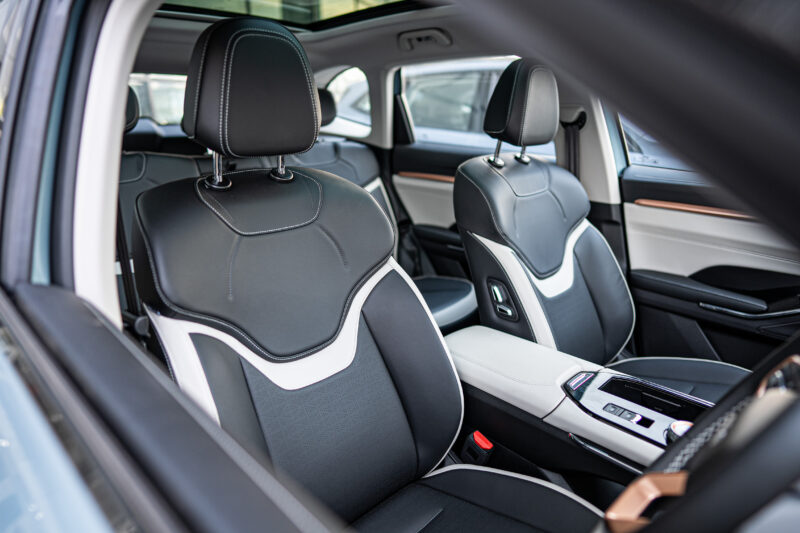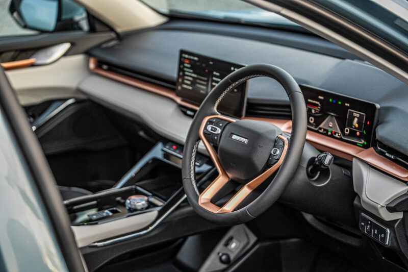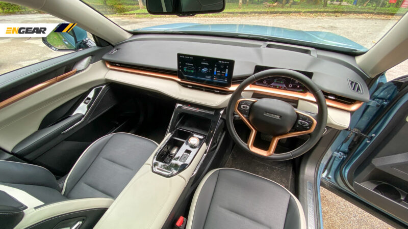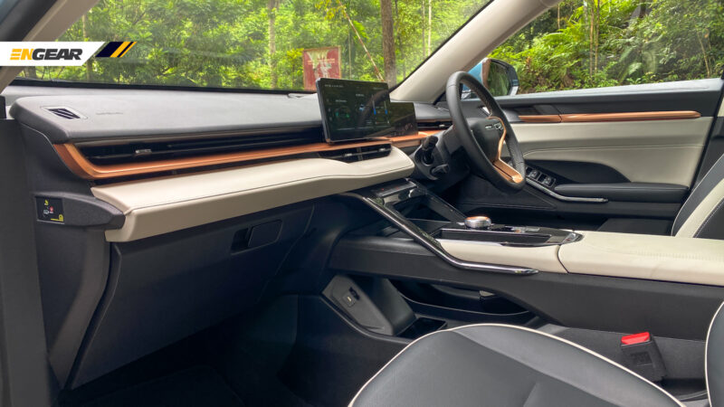 Sementara ruang kabin pula mendapat ciri seperti skrin infohibur 12.3 inci, kawalan iklim dua zon, corong pendingin hawa baris kedua, tempat duduk balutan kulit, pintu tailgate berkuasa, slot pengecasan peranti pintar tanpa wayar, bumbung kaca panorama, skrin paparan head-up serta sistem audio dengan lapan pembesar suara.