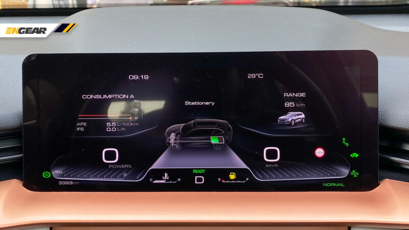 Berdasarkan penggunaan, kami berjaya merekodkan jarak pemanduan sejauh 470 km sebelum bateri mencatatkan baki 15 peratus SoC dengan anggaran jarak tersisa sekitar 102 km.