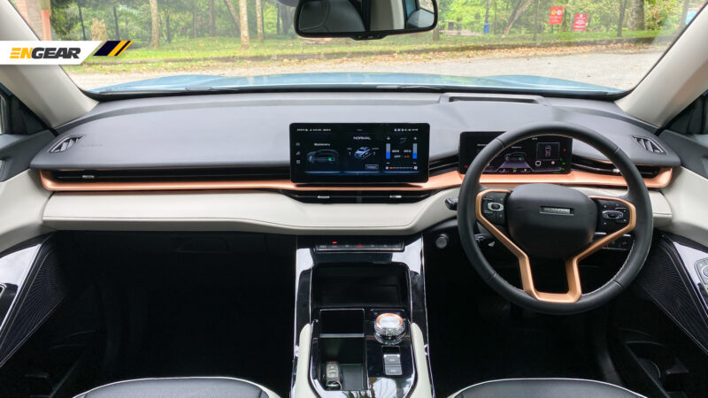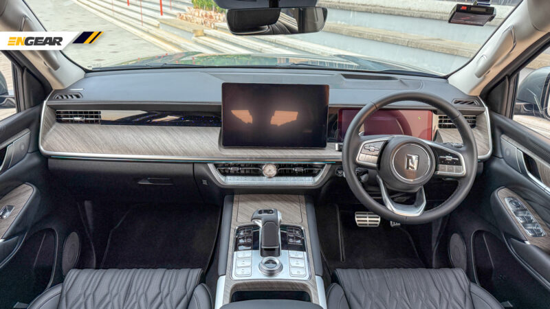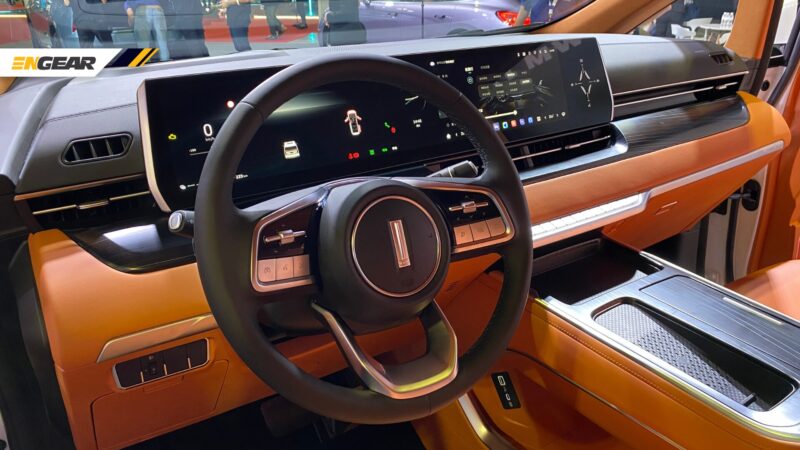 Konsol tengah yang tinggi itu dilihat mengambil inspirasi daripada Bugatti, sementara skrin kluster digital hadapan pemandu pula memang terang-terang membawakan elemen Porsche.