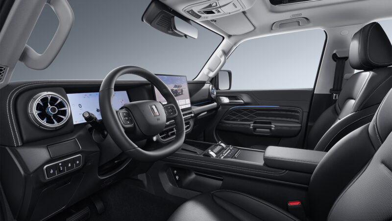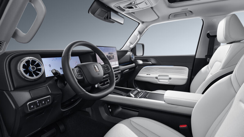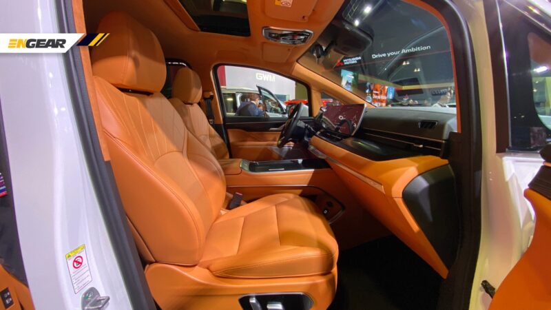 Kabin Wey G9 menawarkan konfigurasi tiga baris tempat duduk, lengkap dengan balutan kulit Nappa Premium dan leatherette untuk baris ketiga.