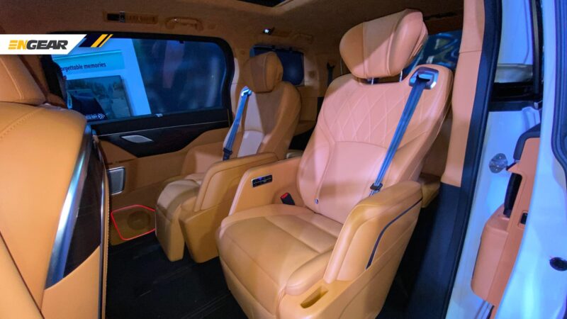Penumpang baris kedua pula boleh menikmati tempat duduk Graviti Sifar, lengkap dengan fungsi pengudaraan, urut, larasan enam-tahap, serta skrin kecil untuk kawalan penting.
