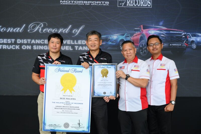 Pencapaian ini meletakkan Isuzu D-Max ke dalam Malaysian Book of Records bagi “Trak Pikap Yang Paling Jauh Dipandu Dengan Satu Tangki Bahan Api”.