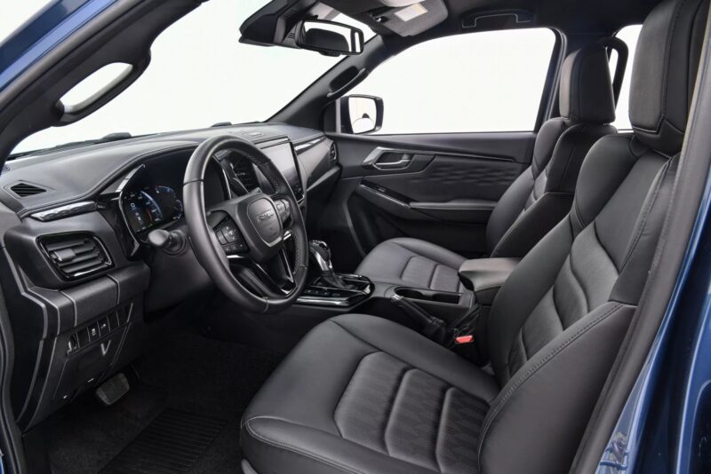 Rasa mewah ini ditingkatkan lagi dengan upholsteri kulit pada tempat duduk dan stereng, serta corak Miura pada panel pintu. Menurut Isuzu, corak paralellogram ini diinspirasikan daripada rekaan origami klasik Jepun.