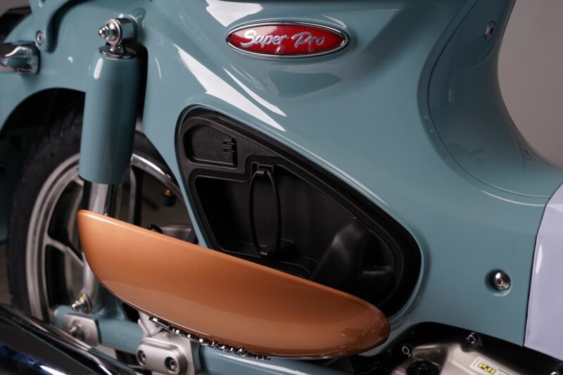 Untuk sebuah jentera cubcross, Cub X ini membawakan spesifikasi yang lebih agresif, seperti tayar off-road tanpa tiub, rim lidi 17 inci, tempat duduk tunggal balutan kulit serta rak barang menggantikan tempat duduk pembonceng.