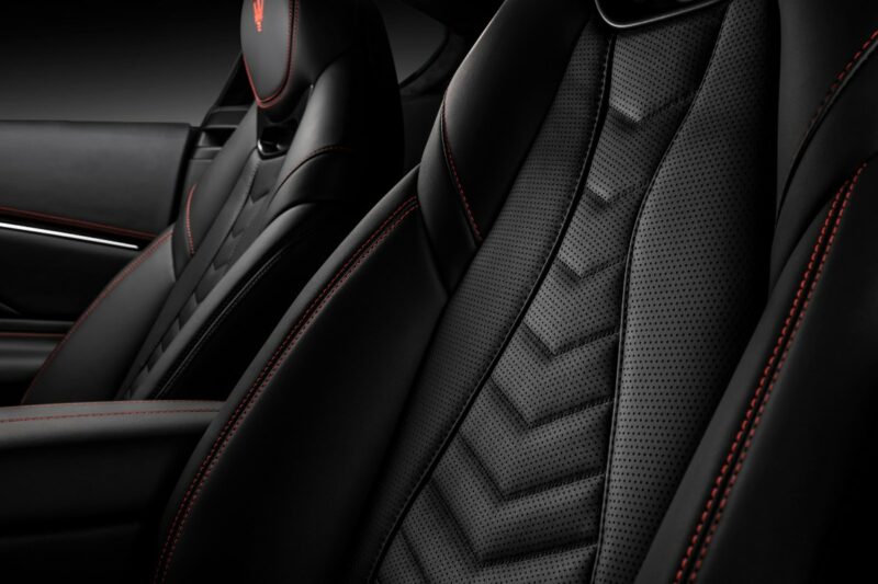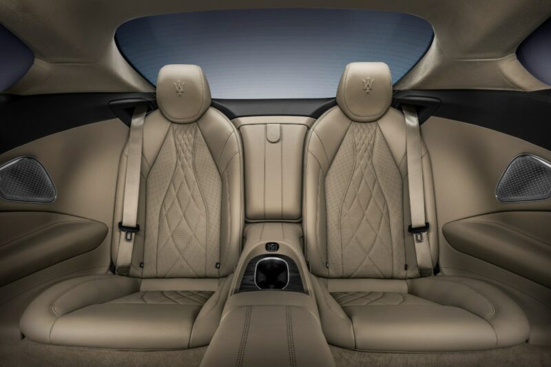 Grecale GT juga dilengkapi dengan suspensi double-wishbone di depan dan multilink di belakang. Terdapat pilihan penyerap hentak aktif dan adaptif serta suspensi udara.