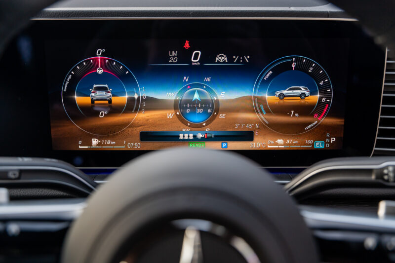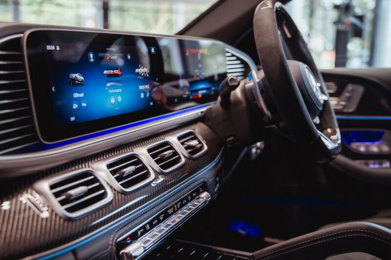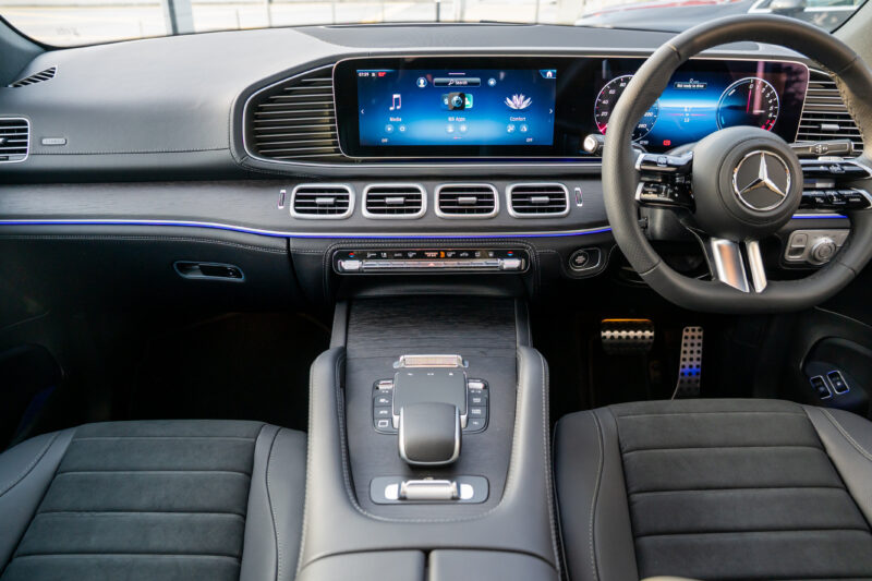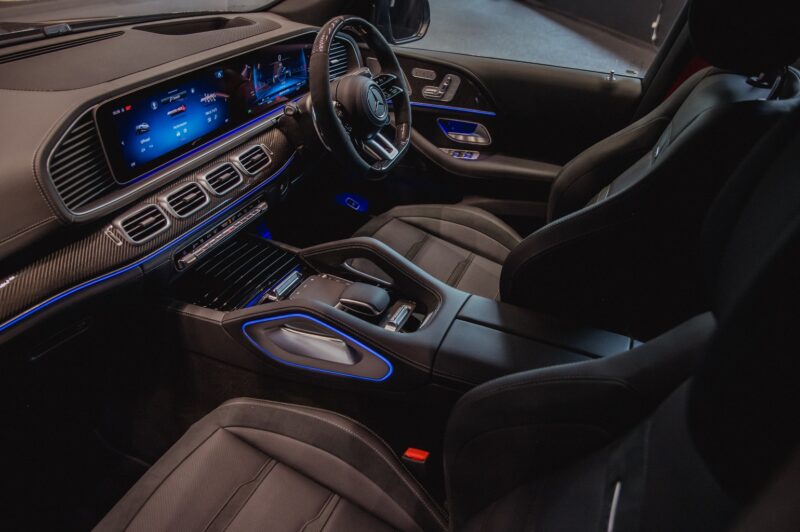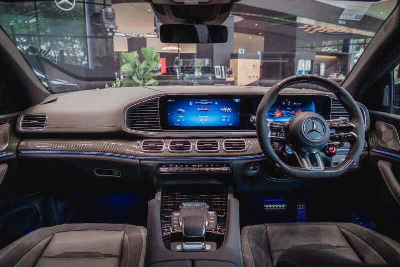 SUV lima tempat duduk ini menampilkan kelengkapan seperti roda stereng sports balutan kulit nappa, pedal sports AMG, upholsteri gabungan kulit ARTICO/mikrofiber MICROCUT, serta kemasan trim kayu Anthracite.