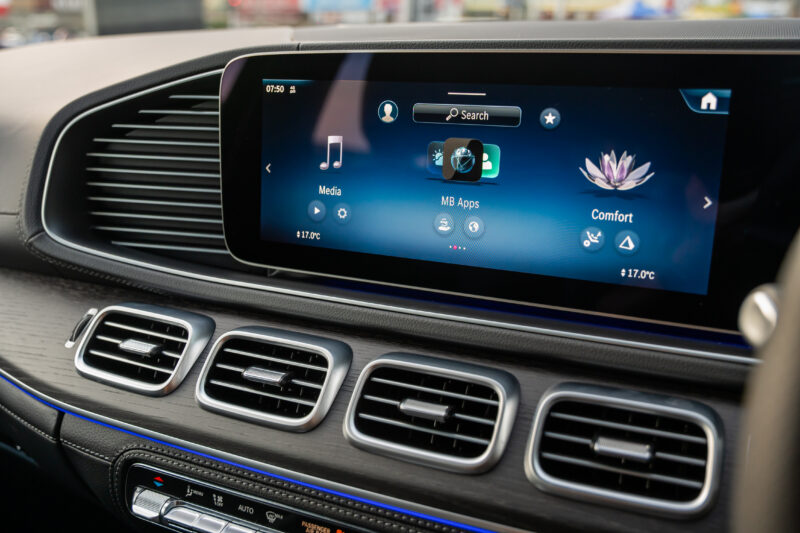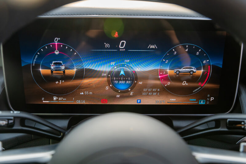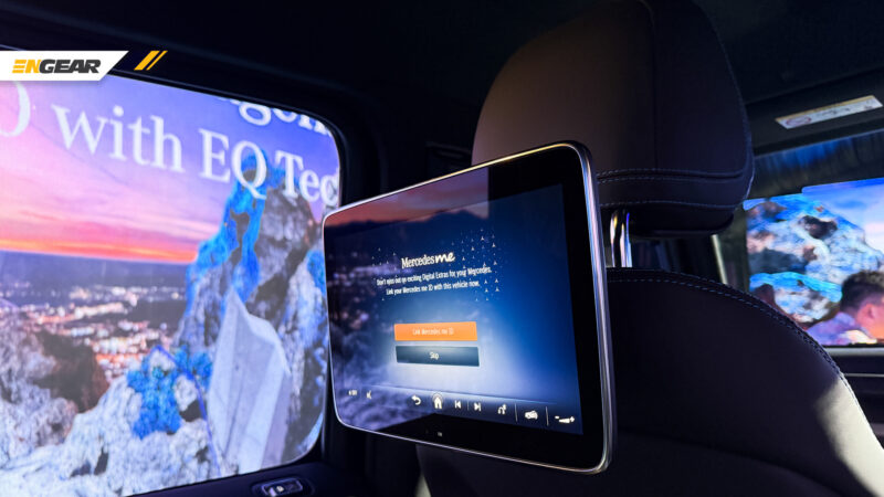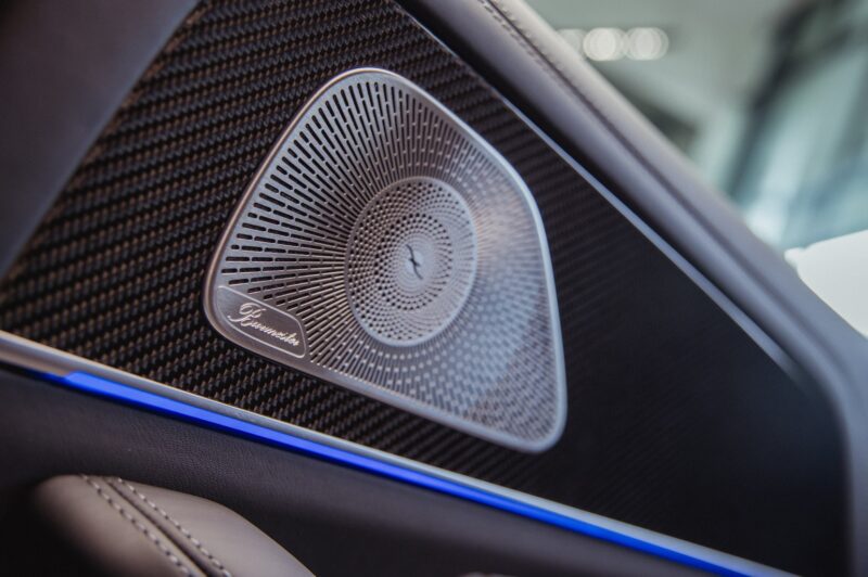 Selain itu, terdapat sistem multimedia MBUX dengan dua skrin lebar 12.3 inci, sistem audio keliling Burmester dengan 13 pembesar suara, sokongan Apple CarPlay dan Android Auto, slot pengecasan peranti pintar tanpa wayar, dan sistem pencahayaan ambien 64-warna.